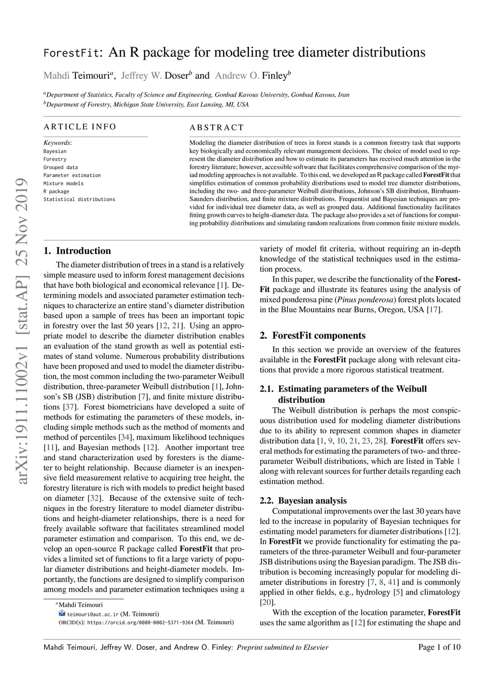 ForestFit : An R package for modeling tree diameter distributions