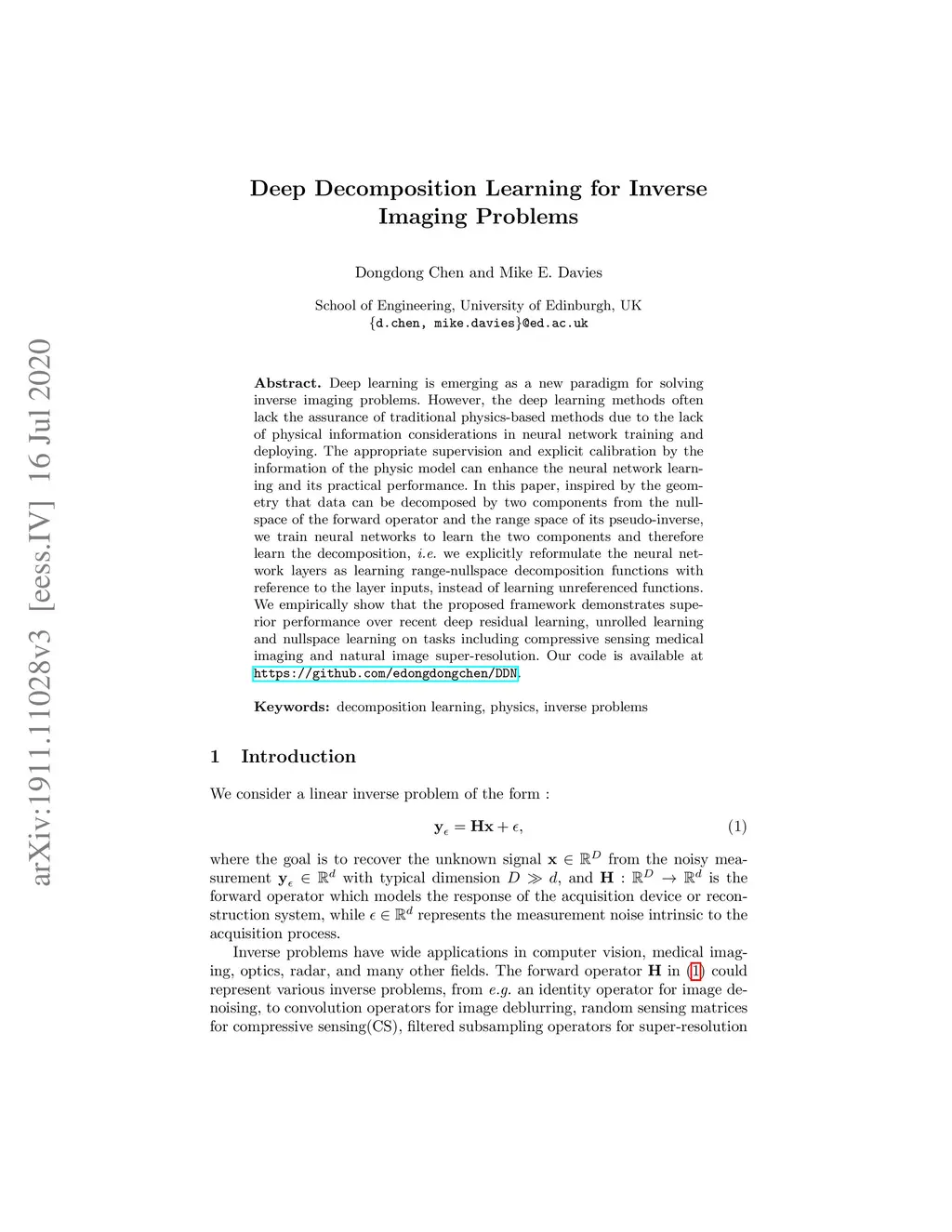 Deep Decomposition Learning for Inverse Imaging Problems