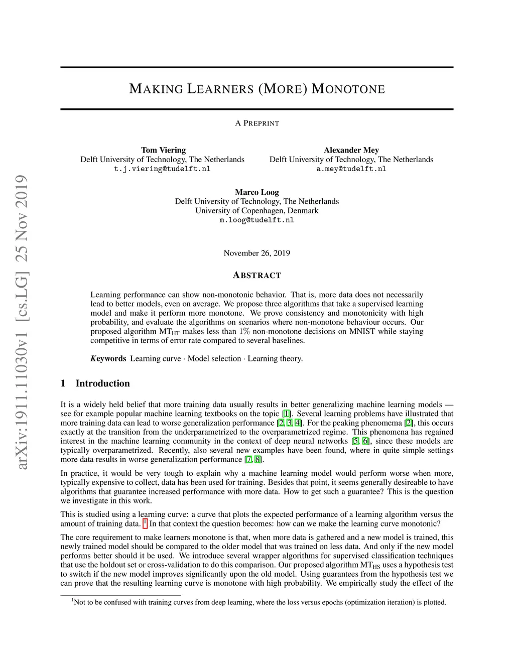 Learning performance can show non-monotonic behavior. That is, more data does not necessarily lead to better models, even on average. We propose three algorithms that take a supervised learning model and make it perform more monotone. We prove consistency and monotonicity with high probability, and evaluate the algorithms on scenarios where non-monotone behaviour occurs. Our proposed algorithm makes less than non-monotone decisions on MNIST while staying competitive in terms of error rate compared to several baselines.
