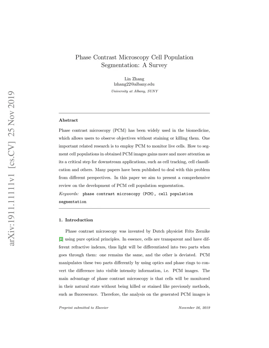 Phase Contrast Microscopy Cell PopulationSegmentation: A Survey