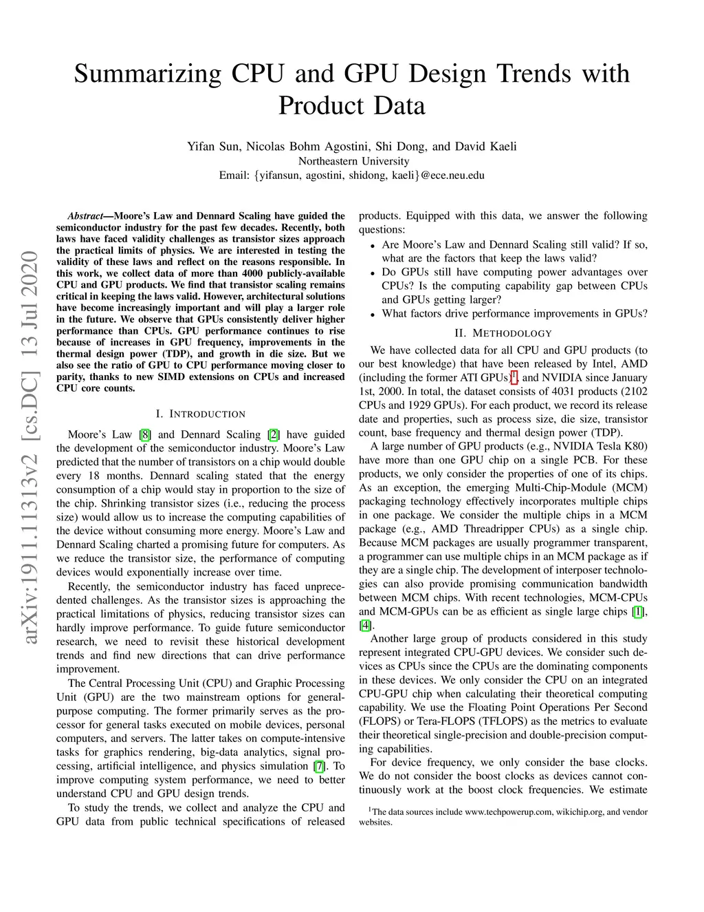 Moore's Law and Dennard Scaling have guided the semiconductor industry for the past few decades. Recently, both laws have faced validity challenges as transistor sizes approach the practical limits of physics. We are interested in testing the validity of these laws and reflect on the reasons responsible. In this work, we collect data of more than 4000 publicly-available CPU and GPU products. We find that transistor scaling remains critical in keeping the laws valid. However, architectural solutions have become increasingly important and will play a larger role in the future. We observe that GPUs consistently deliver higher performance than CPUs. GPU performance continues to rise because of increases in GPU frequency, improvements in the thermal design power (TDP), and growth in die size. But we also see the ratio of GPU to CPU performance moving closer to parity, thanks to new SIMD extensions on CPUs and increased CPU core counts.