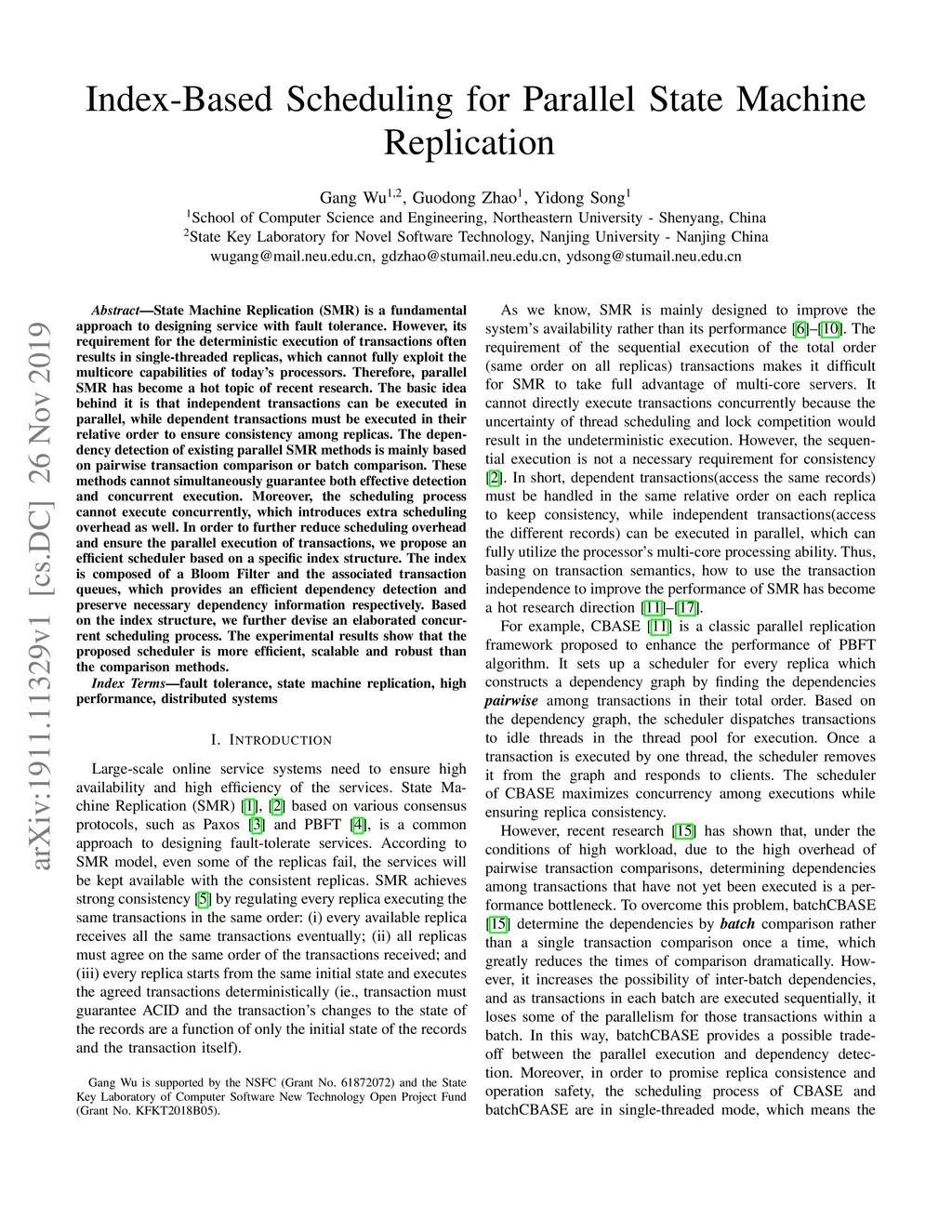 Index-Based Scheduling for Parallel State Machine Replication