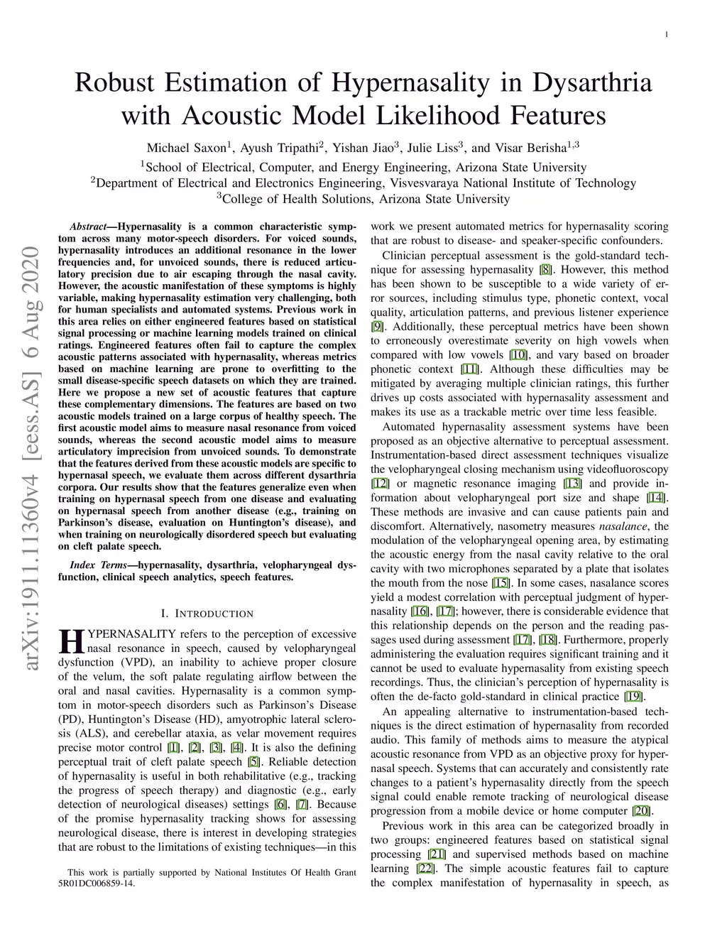 Robust Estimation of Hypernasality in Dysarthria with Acoustic Model