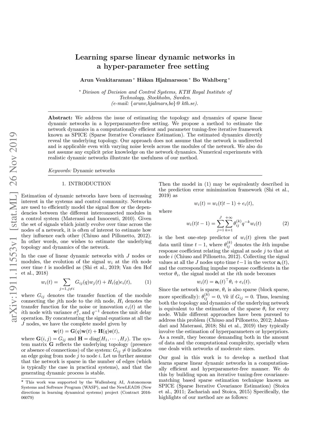 Learning sparse linear dynamic networks in a hyper-parameter free