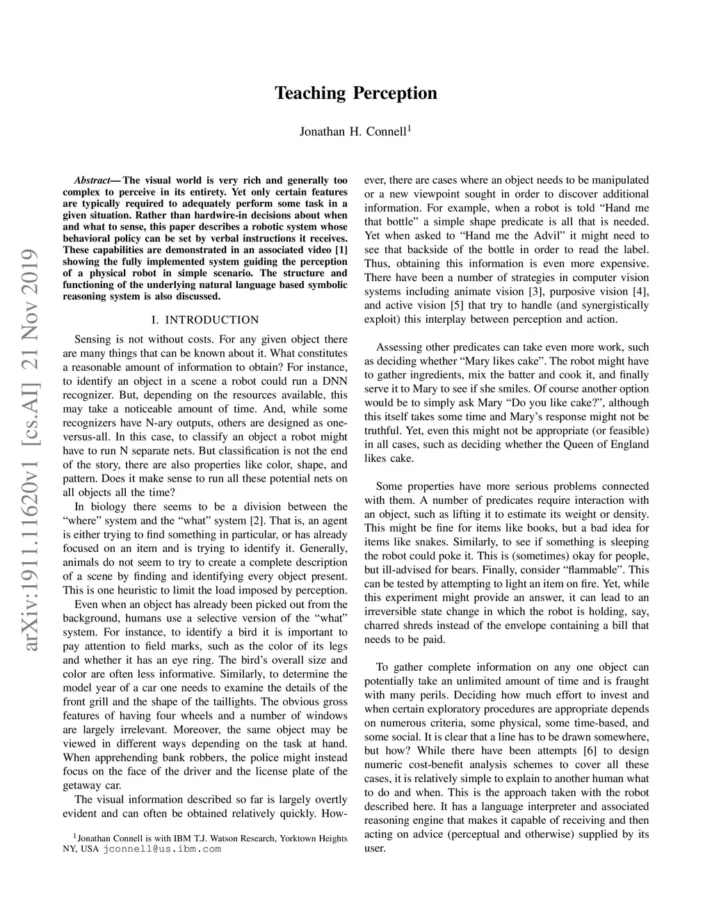 The visual world is very rich and generally too complex to perceive in its entirety. Yet only certain features are typically required to adequately perform some task in a given situation. Rather than hardwire-in decisions about when and what to sense, this paper describes a robotic system whose behavioral policy can be set by verbal instructions it receives. These capabilities are demonstrated in an associated video showing the fully implemented system guiding the perception of a physical robot in simple scenario. The structure and functioning of the underlying natural language based symbolic reasoning system is also discussed.