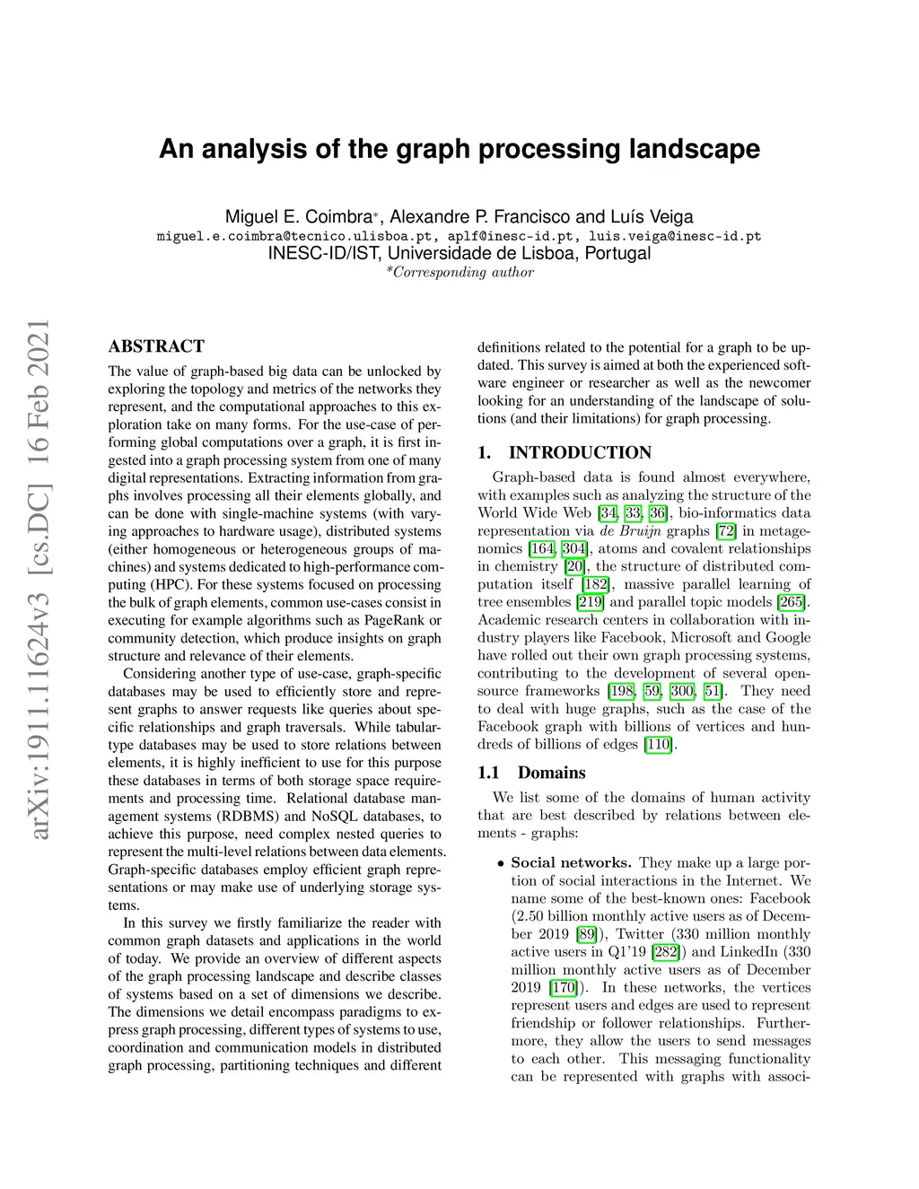 The value of graph-based big data can be unlocked by exploring the topology and metrics of the networks they represent, and the computational approaches to this exploration take on many forms. The use-case of performing global computations over a graph, it is first ingested into a graph processing system from one of many digital representations. Extracting information from graphs involves processing all their elements globally, and can be done with single-machine systems (with varying approaches to hardware usage), distributed systems (either homogeneous or heterogeneous groups of machines) and systems dedicated to high-performance computing (HPC). We provide an overview of different aspects of the graph processing landscape and describe classes of systems based on a set of dimensions we detail. The dimensions we detail encompass paradigms to express graph processing, different types of systems to use, coordination and communication models in distributed graph processing, partitioning techniques and different definitions related to the potential for a graph to be updated. This survey is aimed at both the experienced software engineer or researcher as well as the newcomer looking for an understanding of the landscape of solutions (and their limitations) for graph processing.