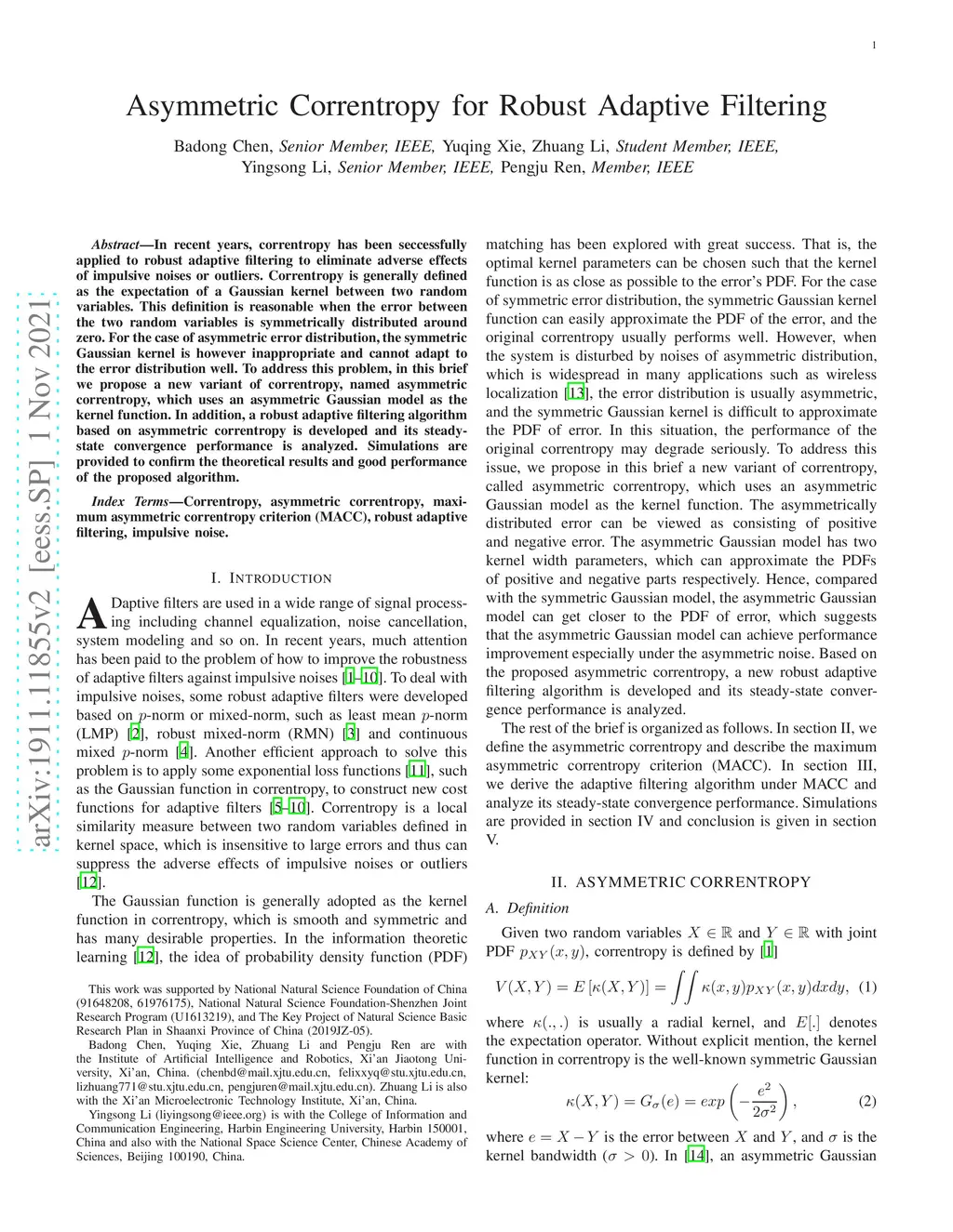 Asymmetric Correntropy for Robust Adaptive Filtering