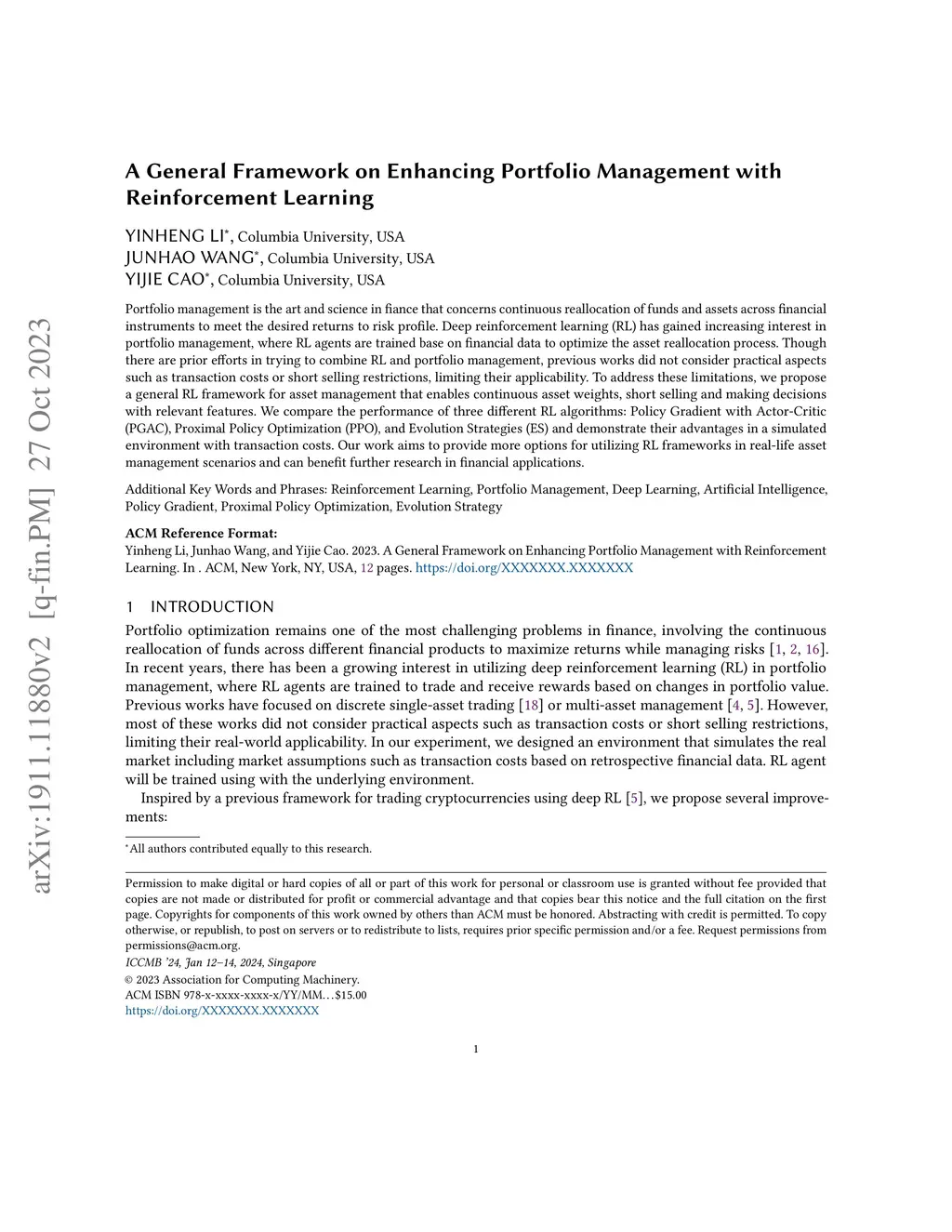 A General Framework on Enhancing Portfolio Management with Reinforcement