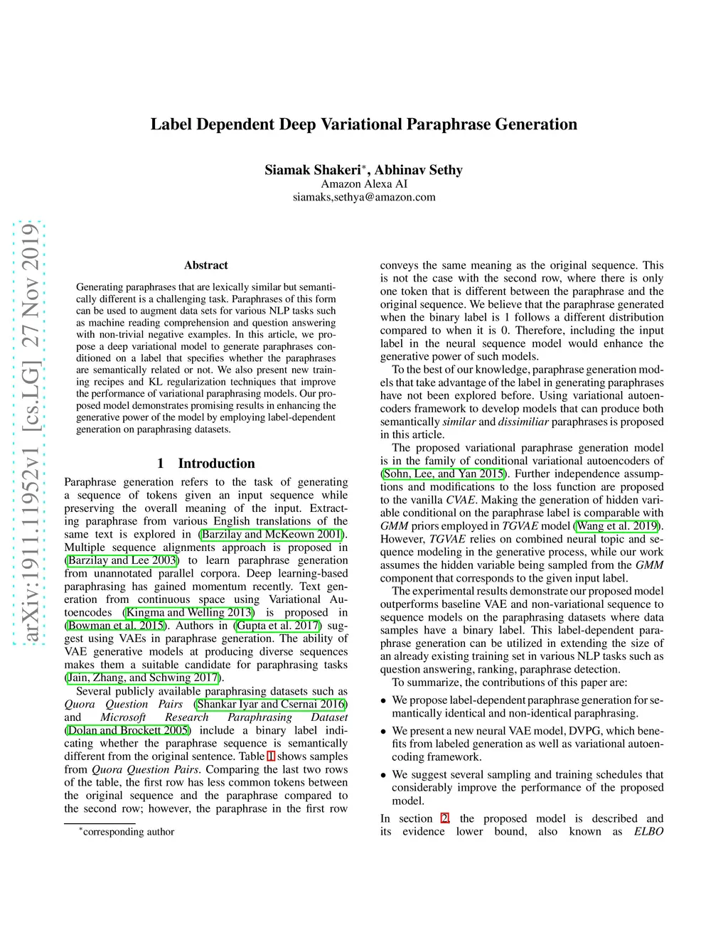 Generating paraphrases that are lexically similar but semantically different is a challenging task. Paraphrases of this form can be used to augment data sets for various NLP tasks such as machine reading comprehension and question answering with non-trivial negative examples. In this article, we propose a deep variational model to generate paraphrases conditioned on a label that specifies whether the paraphrases are semantically related or not. We also present new training recipes and KL regularization techniques that improve the performance of variational paraphrasing models. Our proposed model demonstrates promising results in enhancing the generative power of the model by employing label-dependent generation on paraphrasing datasets.