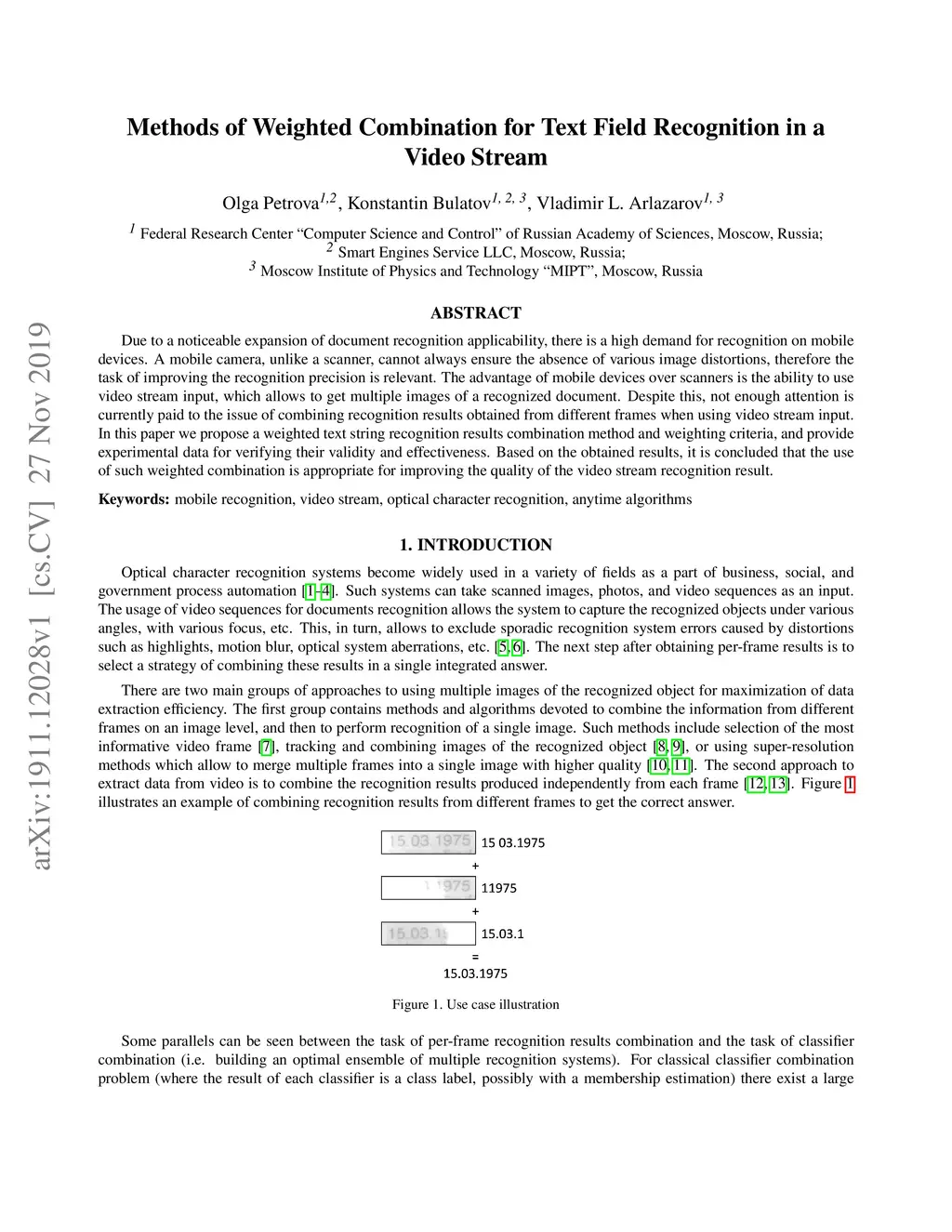 Methods of Weighted Combination for Text Field Recognition in a Video