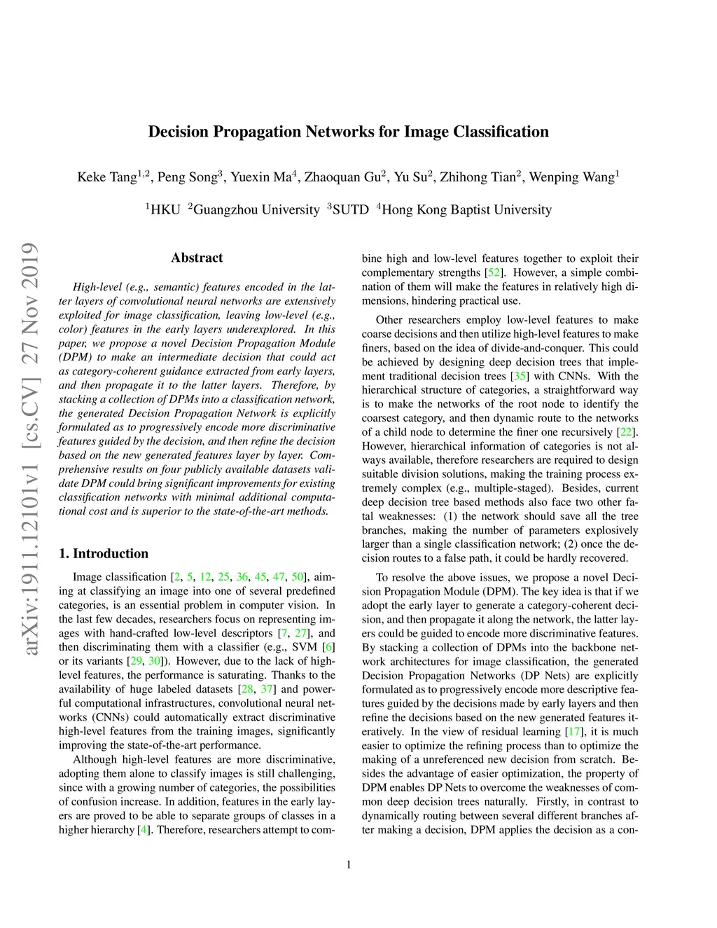 High-level (e.g., semantic) features encoded in the latter layers of convolutional neural networks are extensively exploited for image classification, leaving low-level (e.g., color) features in the early layers underexplored. In this paper, we propose a novel Decision Propagation Module (DPM) to make an intermediate decision that could act as category-coherent guidance extracted from early layers, and then propagate it to the latter layers. Therefore, by stacking a collection of DPMs into a classification network, the generated Decision Propagation Network is explicitly formulated as to progressively encode more discriminative features guided by the decision, and then refine the decision based on the new generated features layer by layer. Comprehensive results on four publicly available datasets validate DPM could bring significant improvements for existing classification networks with minimal additional computational cost and is superior to the state-of-the-art methods.