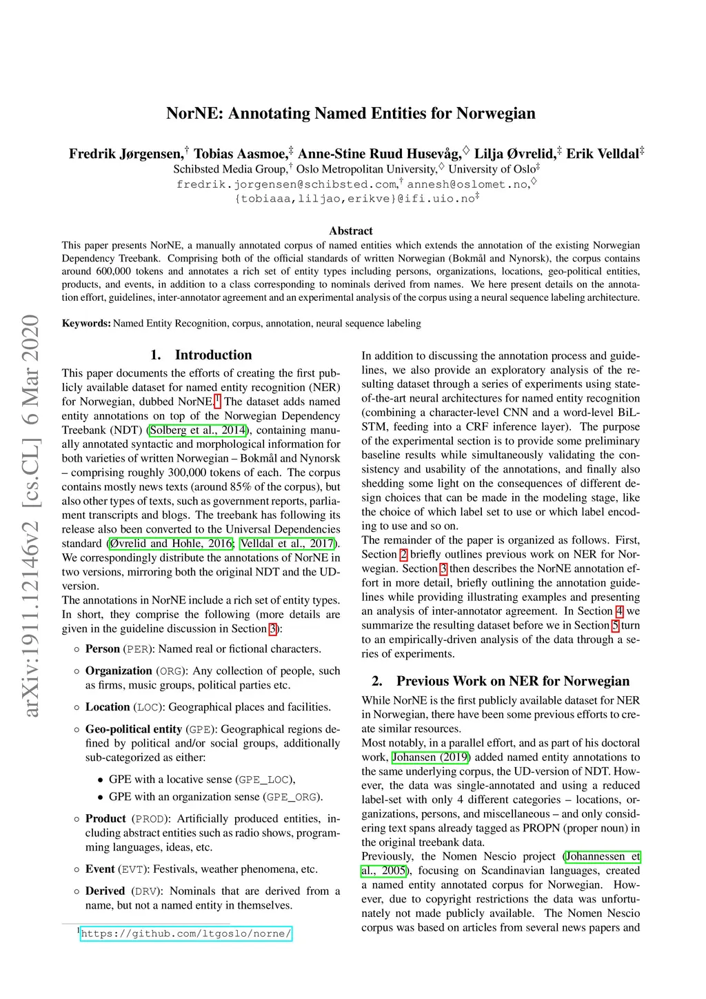 NorNE: Annotating Named Entities for Norwegian