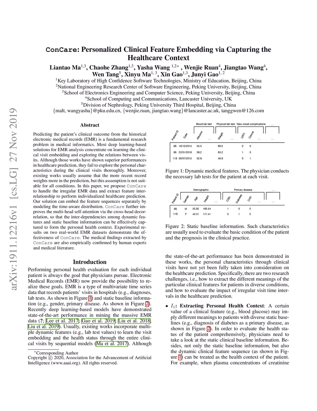 ConCare: Personalized Clinical Feature Embedding via Capturing the