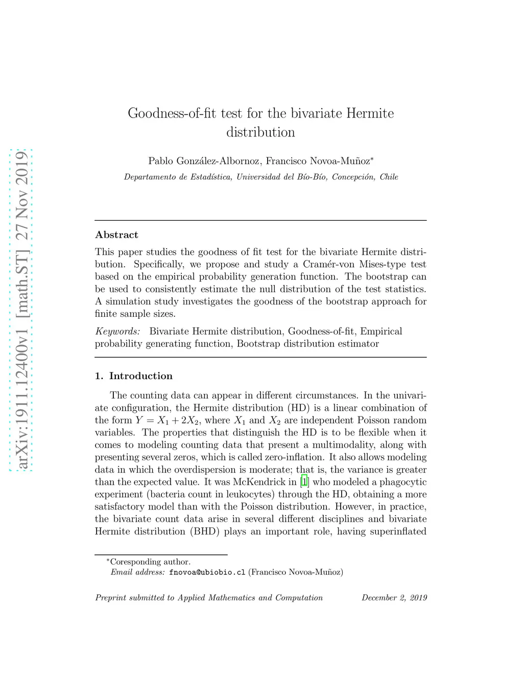 Goodness-of-fit test for the bivariate Hermite distribution