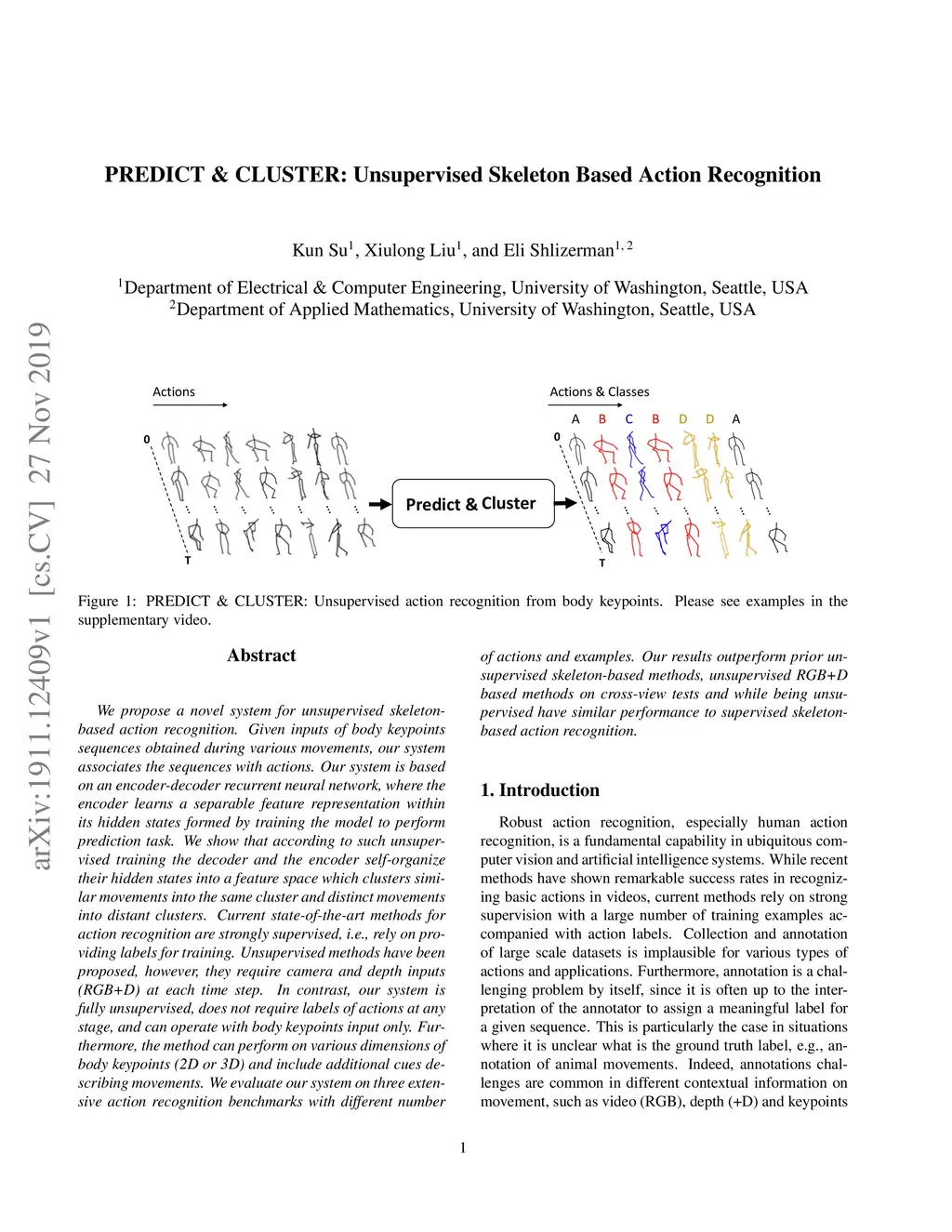 PREDICT & CLUSTER: Unsupervised Skeleton Based Action Recognition
