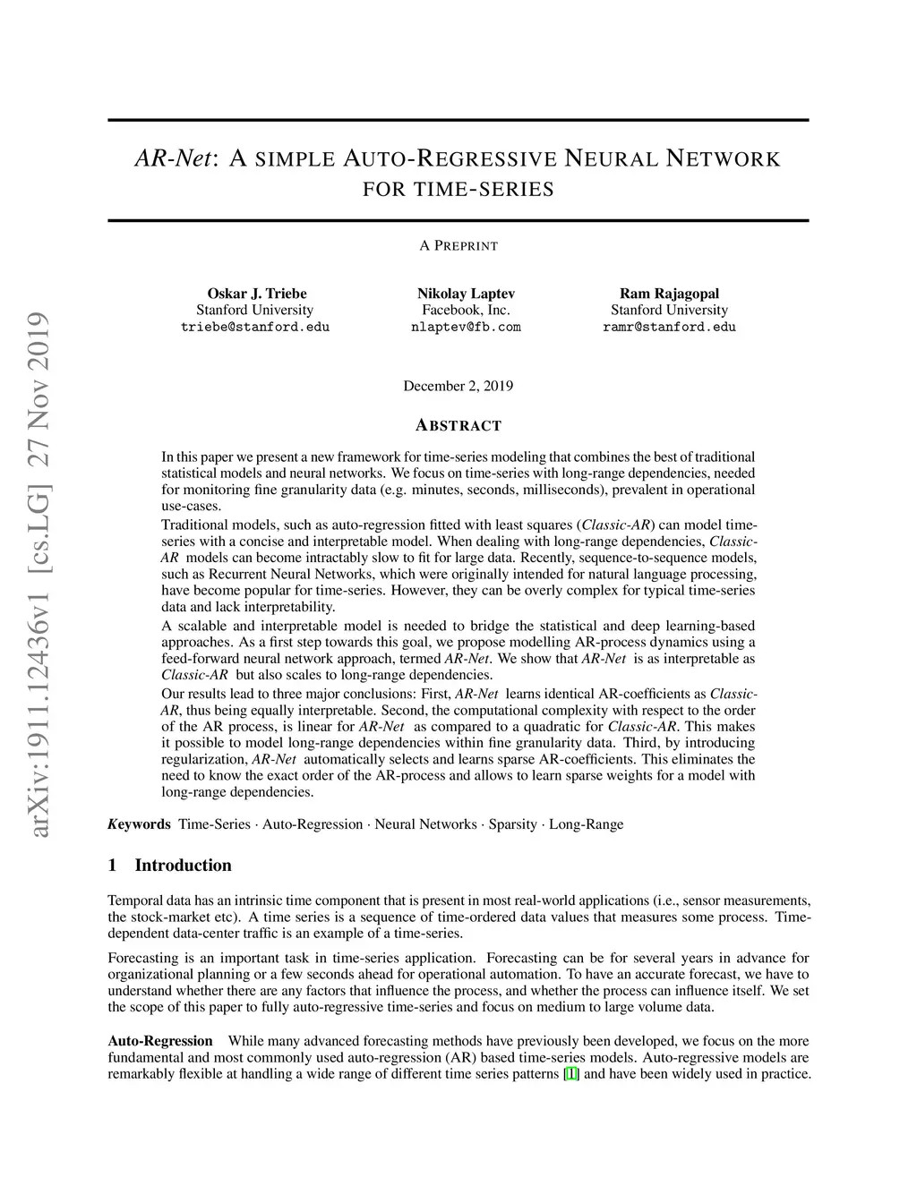 AR-Net: A simple Auto-Regressive Neural Network for time-series