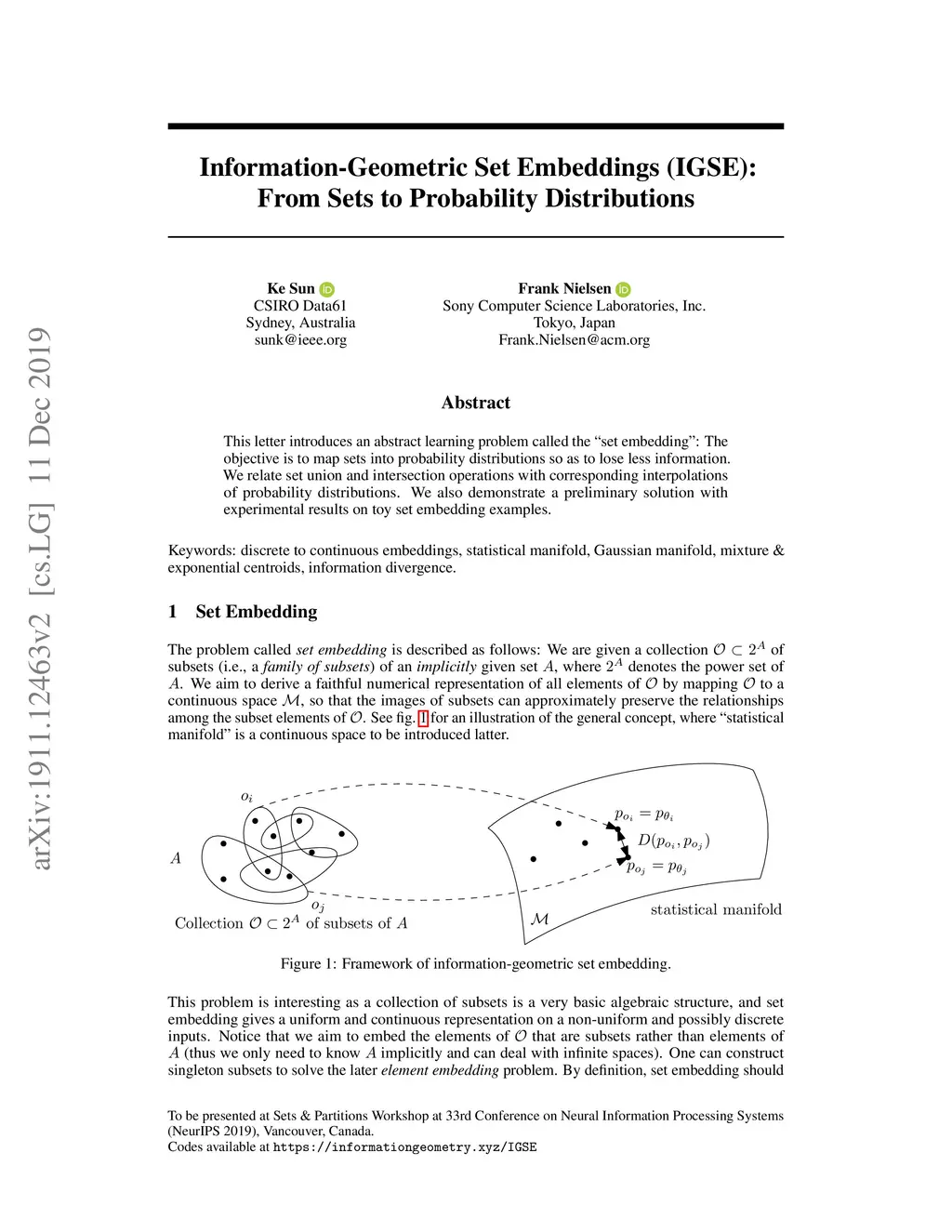 Information-Geometric Set Embeddings (IGSE): From Sets to Probability