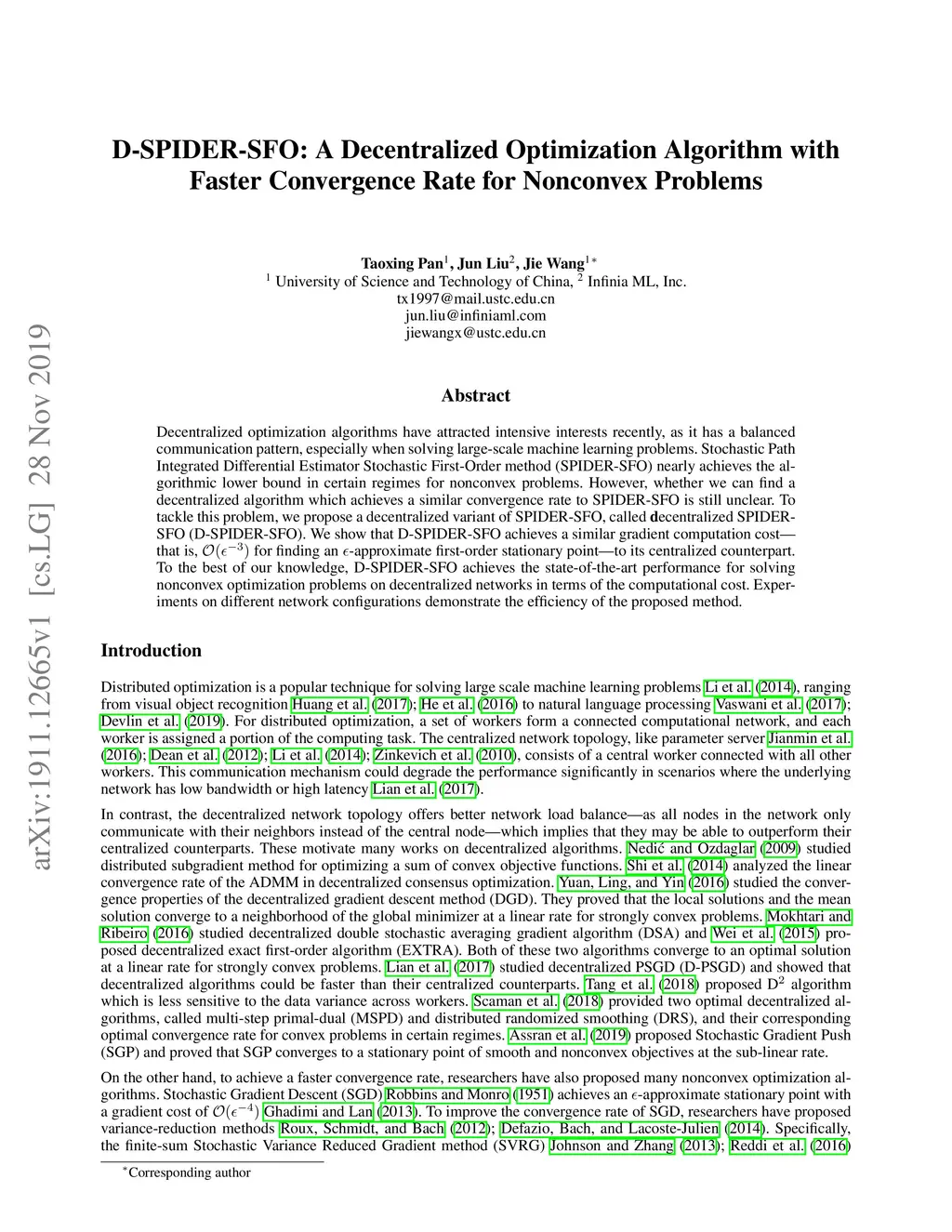 D-SPIDER-SFO: A Decentralized Optimization Algorithm with Faster