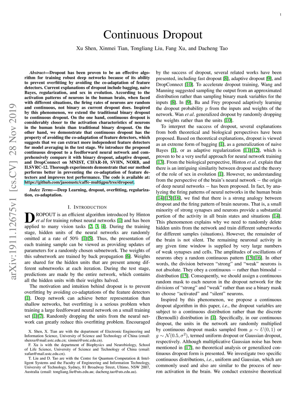 Continuous Dropout