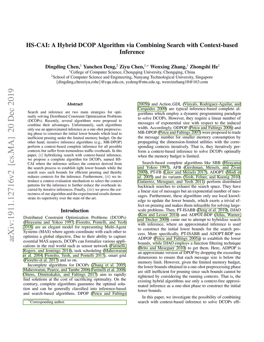 HS-CAI: A Hybrid DCOP Algorithm via Combining Search with Context-based