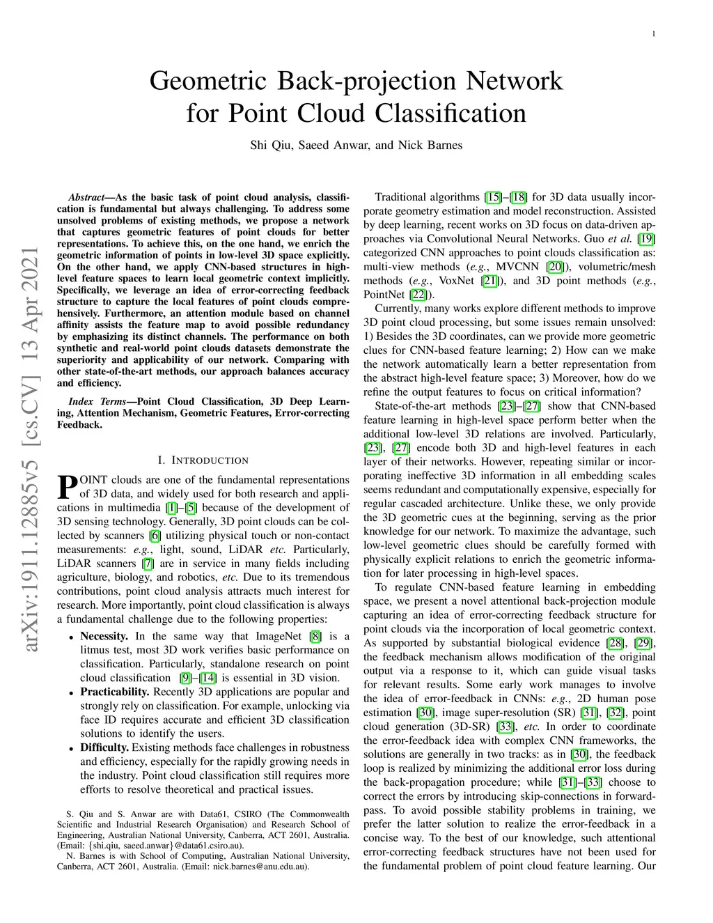 Geometric Back-projection Network for Point Cloud Classification