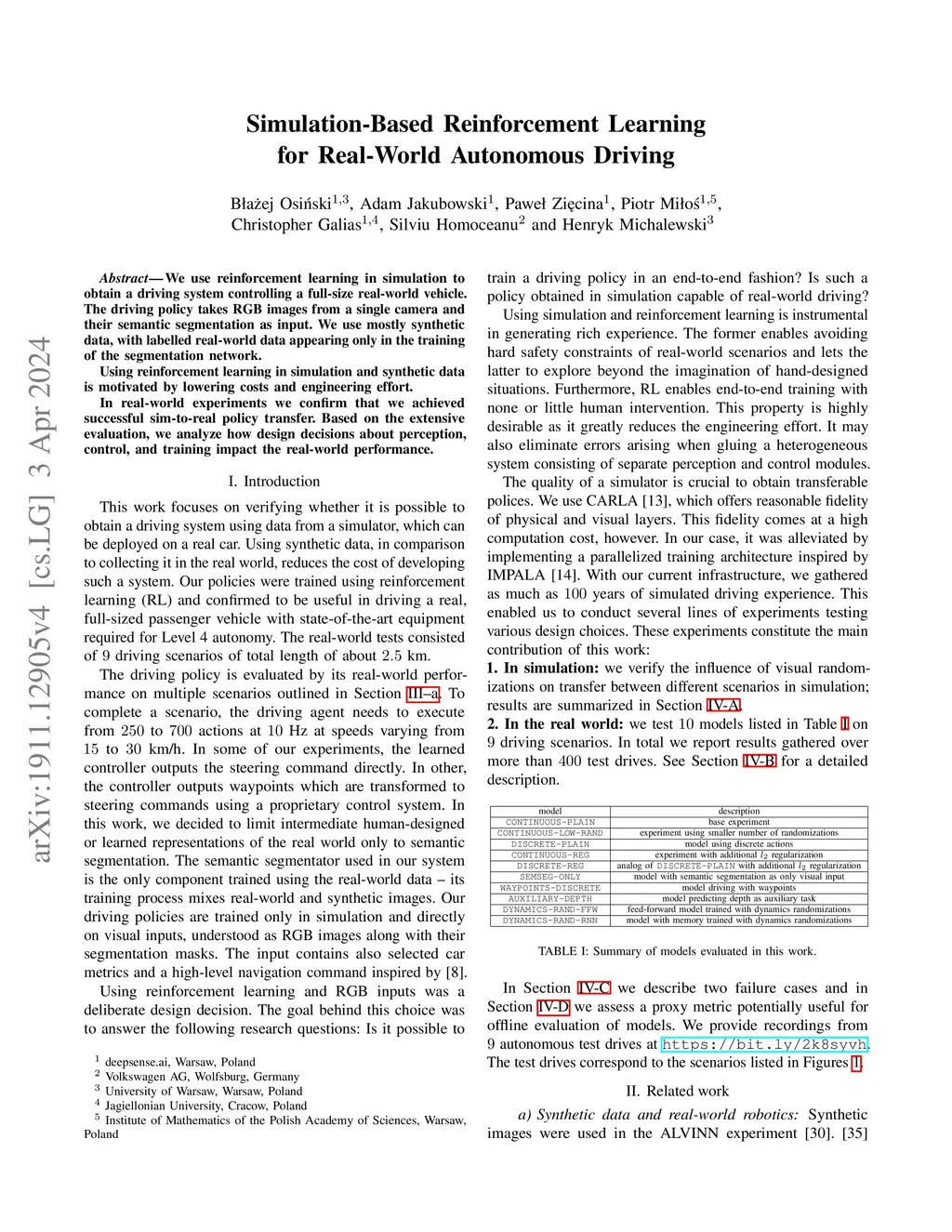 Simulation-based reinforcement learning for real-world autonomous