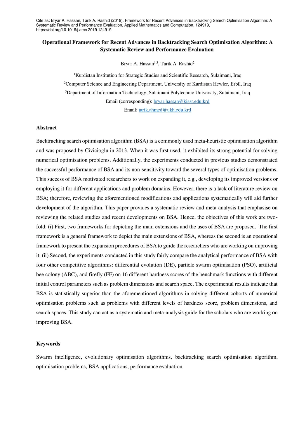 The experiments conducted in previous studies demonstrated the successful performance of BSA and its non-sensitivity toward the several types of optimisation problems. This success of BSA motivated researchers to work on expanding it, e.g., developing its improved versions or employing it for different applications and problem domains. However, there is a lack of literature review on BSA; therefore, reviewing the aforementioned modifications and applications systematically will aid further development of the algorithm. This paper provides a systematic review and meta-analysis that emphasise on reviewing the related studies and recent developments on BSA. Hence, the objectives of this work are two-fold: (i) First, two frameworks for depicting the main extensions and the uses of BSA are proposed. The first framework is a general framework to depict the main extensions of BSA, whereas the second is an operational framework to present the expansion procedures of BSA to guide the researchers who are working on improving it. (ii) Second, the experiments conducted in this study fairly compare the analytical performance of BSA with four other competitive algorithms: differential evolution (DE), particle swarm optimisation (PSO), artificial bee colony (ABC), and firefly (FF) on 16 different hardness scores of the benchmark functions with different initial control parameters such as problem dimensions and search space. The experimental results indicate that BSA is statistically superior than the aforementioned algorithms in solving different cohorts of numerical optimisation problems such as problems with different levels of hardness score, problem dimensions, and search spaces.