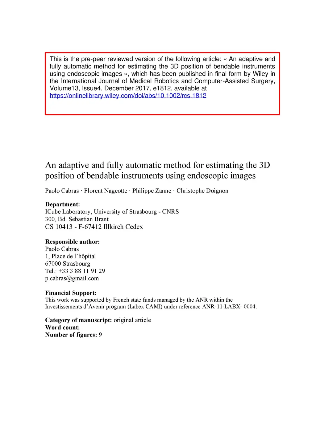 An adaptive and fully automatic method for estimating the 3D position of