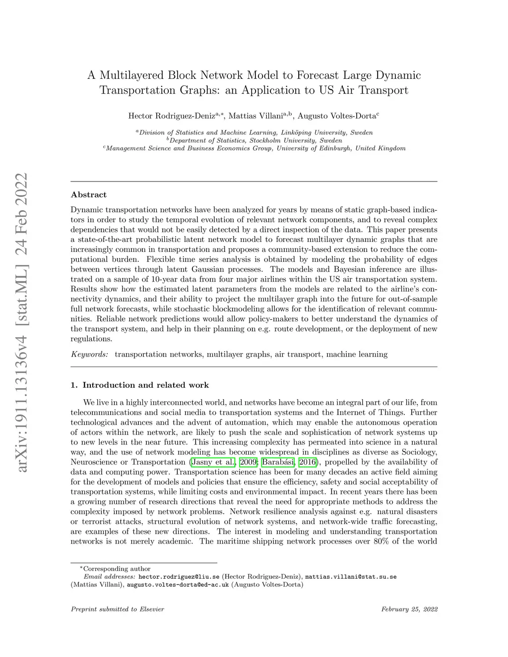 As network data become increasingly available, new opportunities arise to understand dynamic and multilayer network systems in many applied disciplines. Dynamic transportation networks have been analyzed for years by means of static graph-based indicators in order to study the temporal evolution of relevant network components, and to reveal complex dependencies that would not be easily detected by a direct inspection of the data. There is an opportunity for a methodological advance by using state-of-the-art statistical models for dynamic and multilayer graph data. Existing multilayer models are however typically limited to small, unstructured networks. In this paper we introduce a dynamic multilayer block network model with a latent space representation for blocks rather than nodes, which is natural for many real networks, such as social or transportation networks, where community structure naturally arise. The model and Bayesian inference are illustrated on a sample of 10-year data from the US air transportation system. We show how the proposed model projects the multilayer graph into the future for outof-sample full network forecasts, while stochastic blockmodeling allows for the identification of relevant communities and keeps estimation times within reasonable limits.