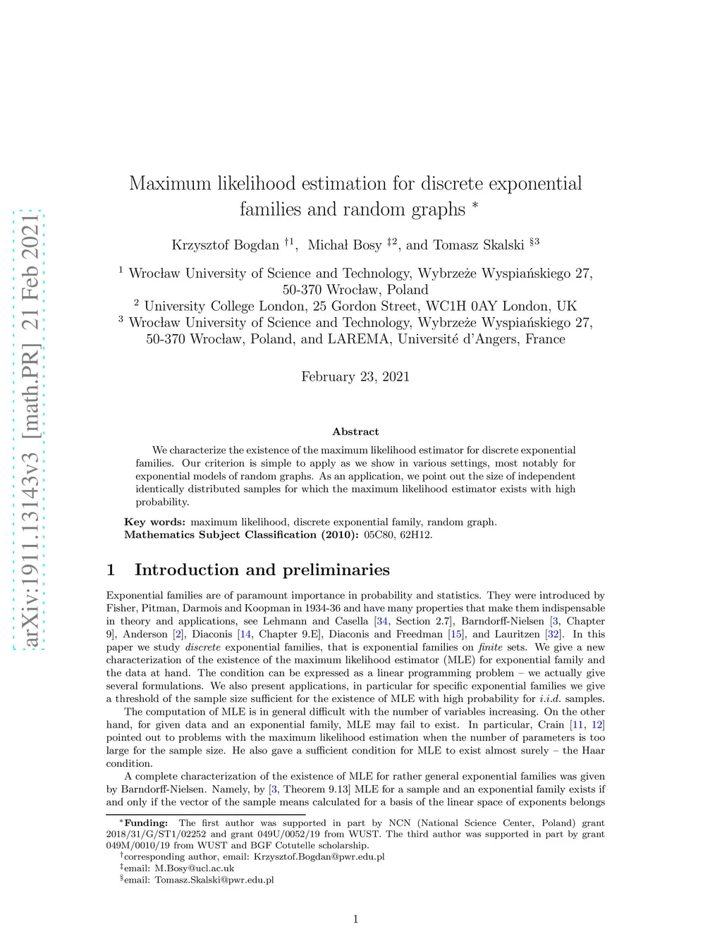 We characterize the existence of the maximum likelihood estimator for discrete exponential families. Our criterion is simple to apply as we show in various settings, most notably for exponential models of random graphs. As an application, we point out the size of independent identically distributed samples for which the maximum likelihood estimator exists with high probability.