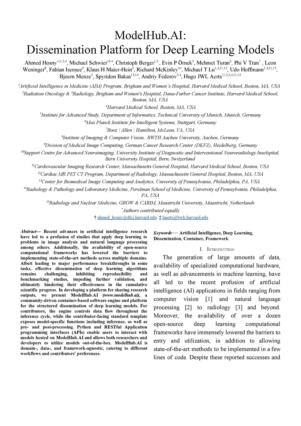 ModelHub.AI: Dissemination Platform for Deep Learning Models
