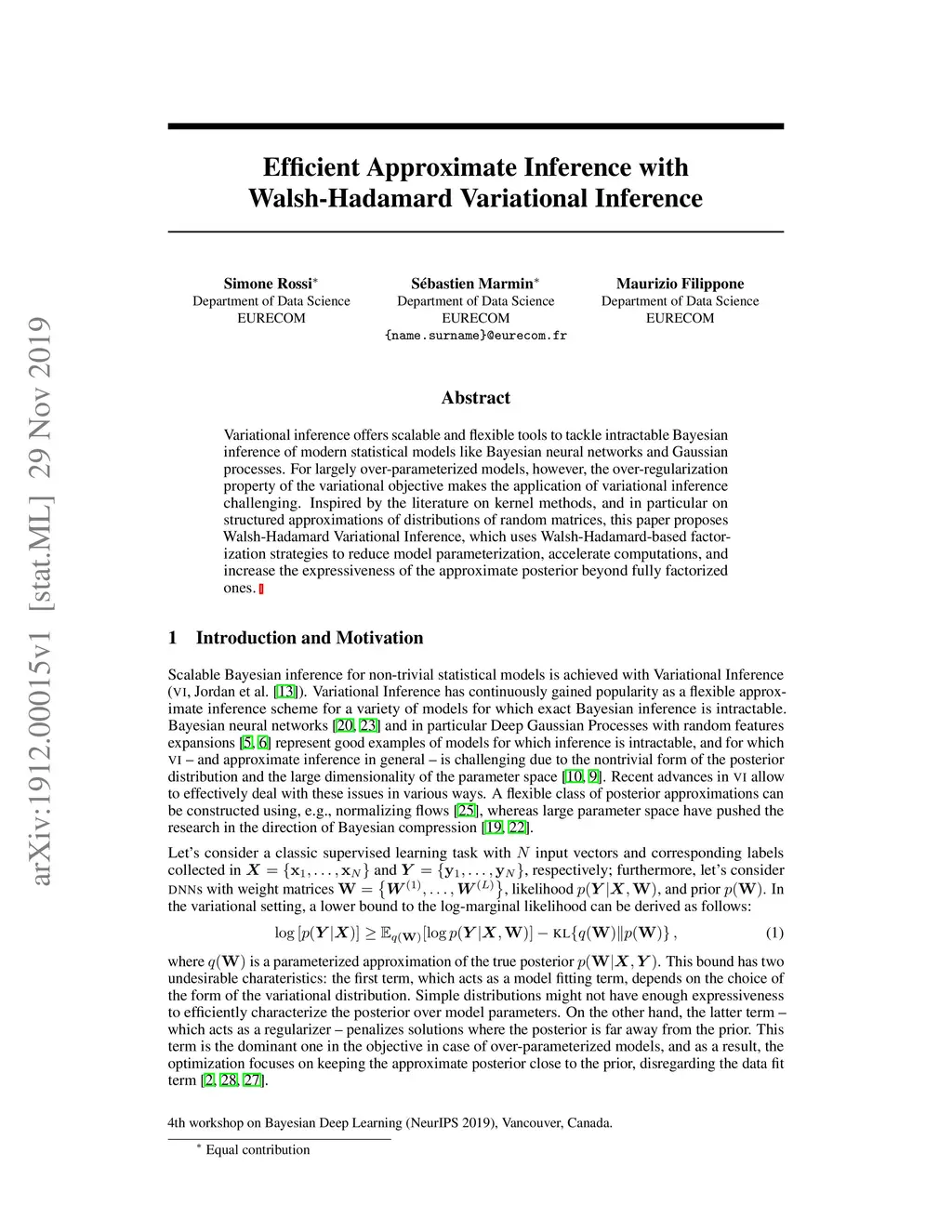 Efficient Approximate Inference with Walsh-Hadamard Variational