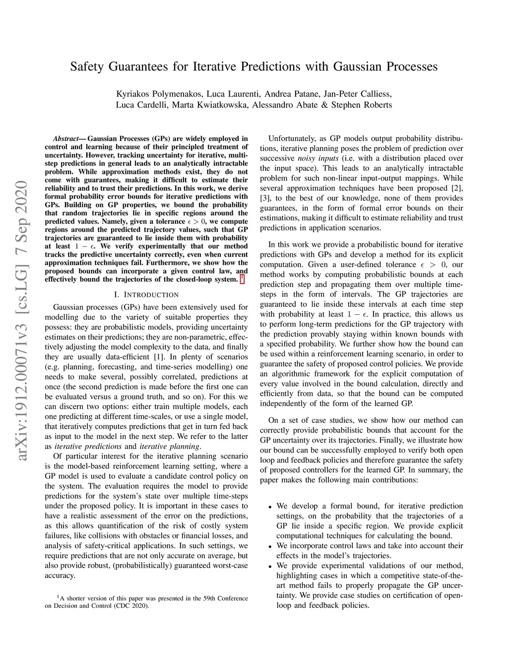 Gaussian Processes (GPs) are widely employed in control and learning because of their principled treatment of uncertainty. However, tracking uncertainty for iterative, multi-step predictions in general leads to an analytically intractable problem. While approximation methods exist, they do not come with guarantees, making it difficult to estimate their reliability and to trust their predictions. In this work, we derive formal probability error bounds for iterative prediction and planning with GPs. Building on GP properties, we bound the probability that random trajectories lie in specific regions around the predicted values. Namely, given a tolerance $\epsilon > 0 $, we compute regions around the predicted trajectory values, such that GP trajectories are guaranteed to lie inside them with probability at least . We verify experimentally that our method tracks the predictive uncertainty correctly, even when current approximation techniques fail. Furthermore, we show how the proposed bounds can be employed within a safe reinforcement learning framework to verify the safety of candidate control policies, guiding the synthesis of provably safe controllers.