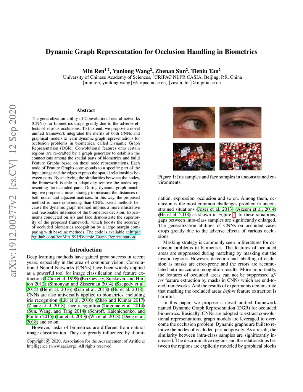 Dynamic Graph Representation for Partially Occluded Biometrics