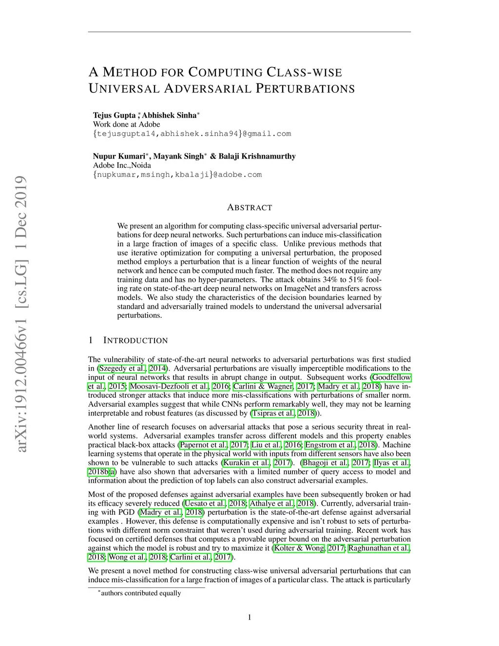A Method for Computing Class-wise Universal Adversarial Perturbations