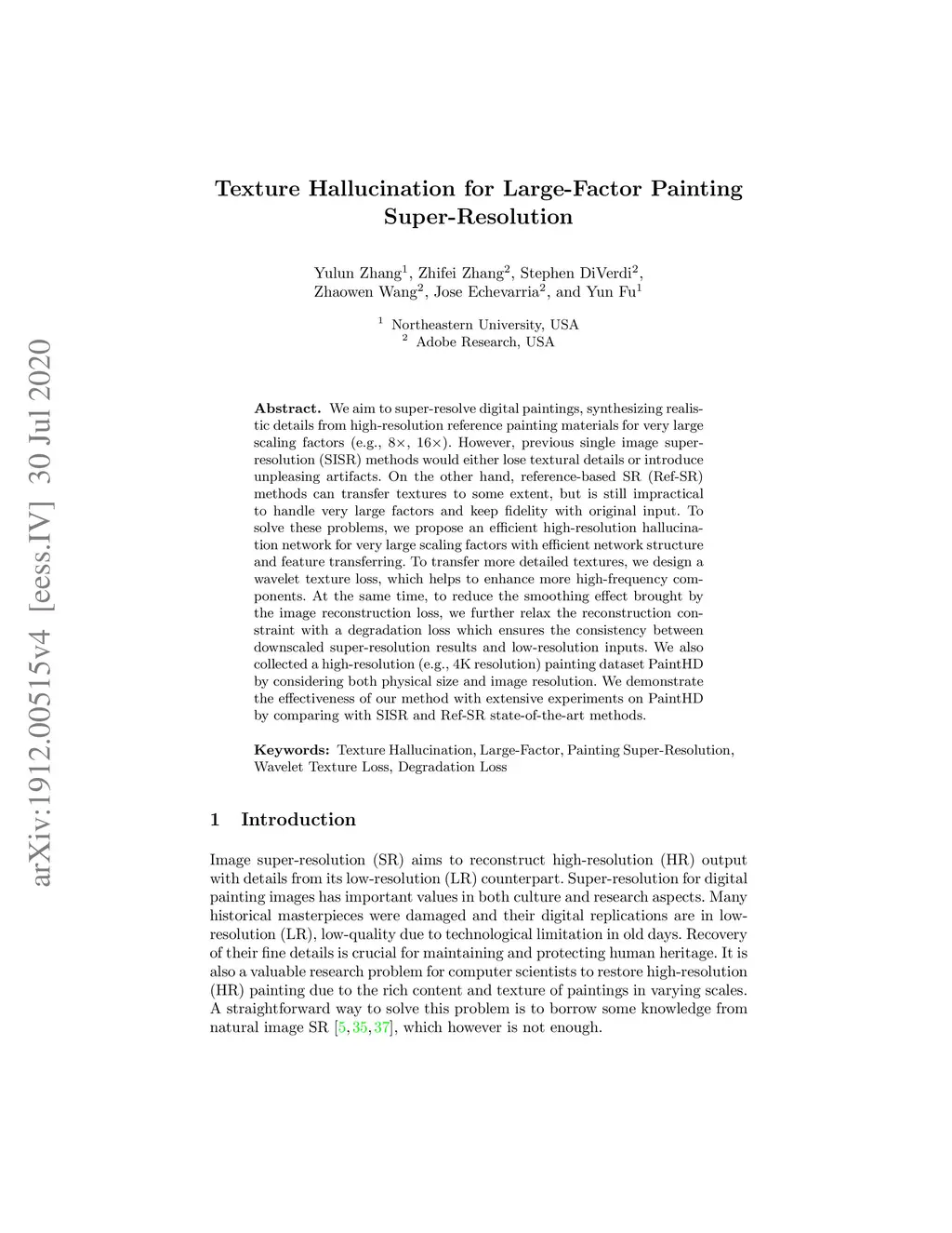 Texture Hallucination for Large-Factor Painting Super-Resolution