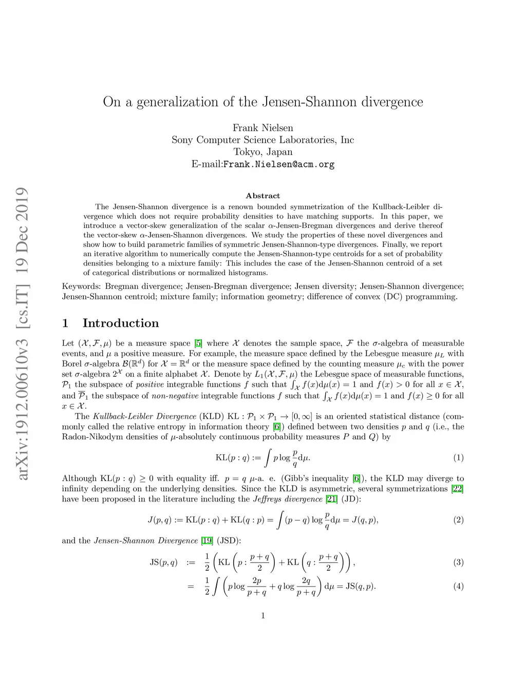 The Jensen-Shannon divergence is a renown bounded symmetrization of the Kullback-Leibler divergence which does not require probability densities to have matching supports. In this paper, we introduce a vector-skew generalization of the scalar -Jensen-Bregman divergences and derive thereof the vector-skew -Jensen-Shannon divergences. We study the properties of these novel divergences and show how to build parametric families of symmetric Jensen-Shannon-type divergences. Finally, we report an iterative algorithm to numerically compute the Jensen-Shannon-type centroids for a set of probability densities belonging to a mixture family: This includes the case of the Jensen-Shannon centroid of a set of categorical distributions or normalized histograms.