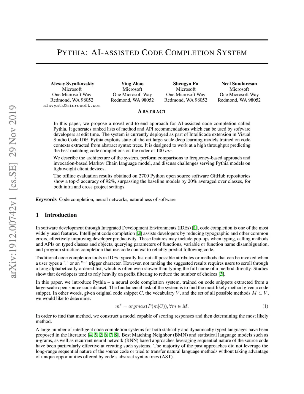 Pythia: AI-assisted Code Completion System
