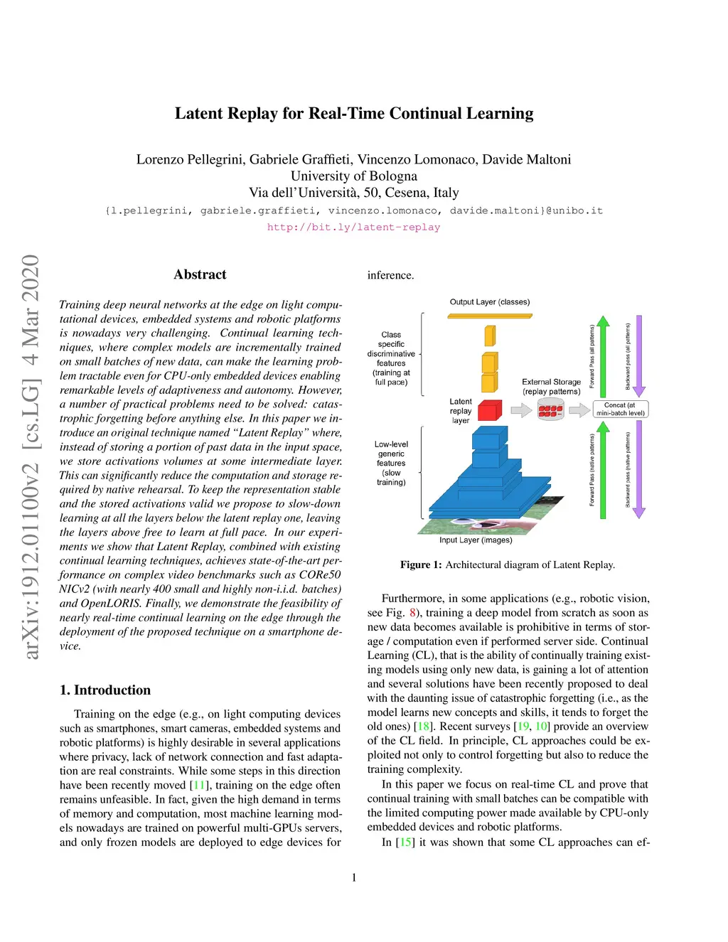 Latent Replay for Real-Time Continual Learning