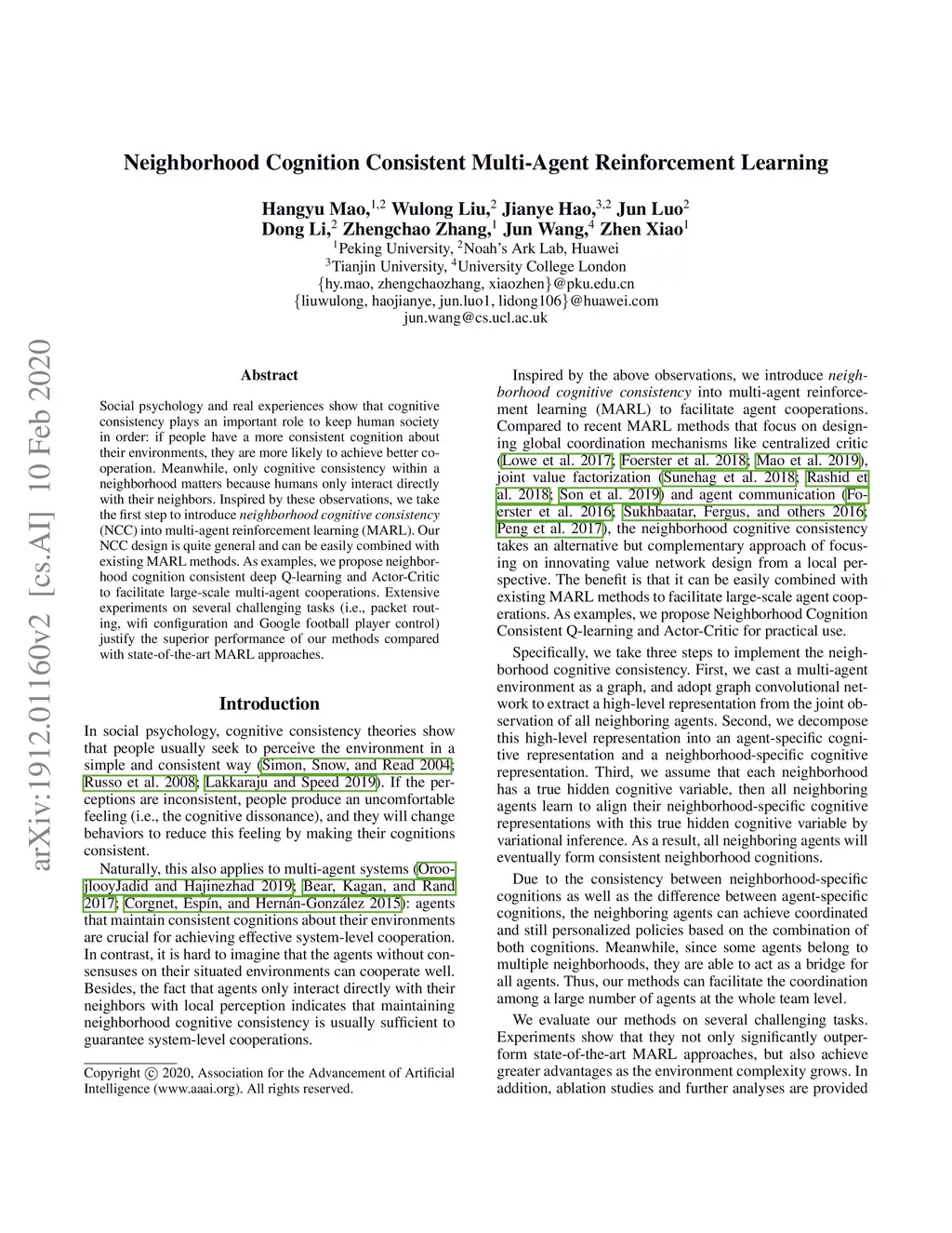 Neighborhood Cognition Consistent Multi-Agent Reinforcement Learning