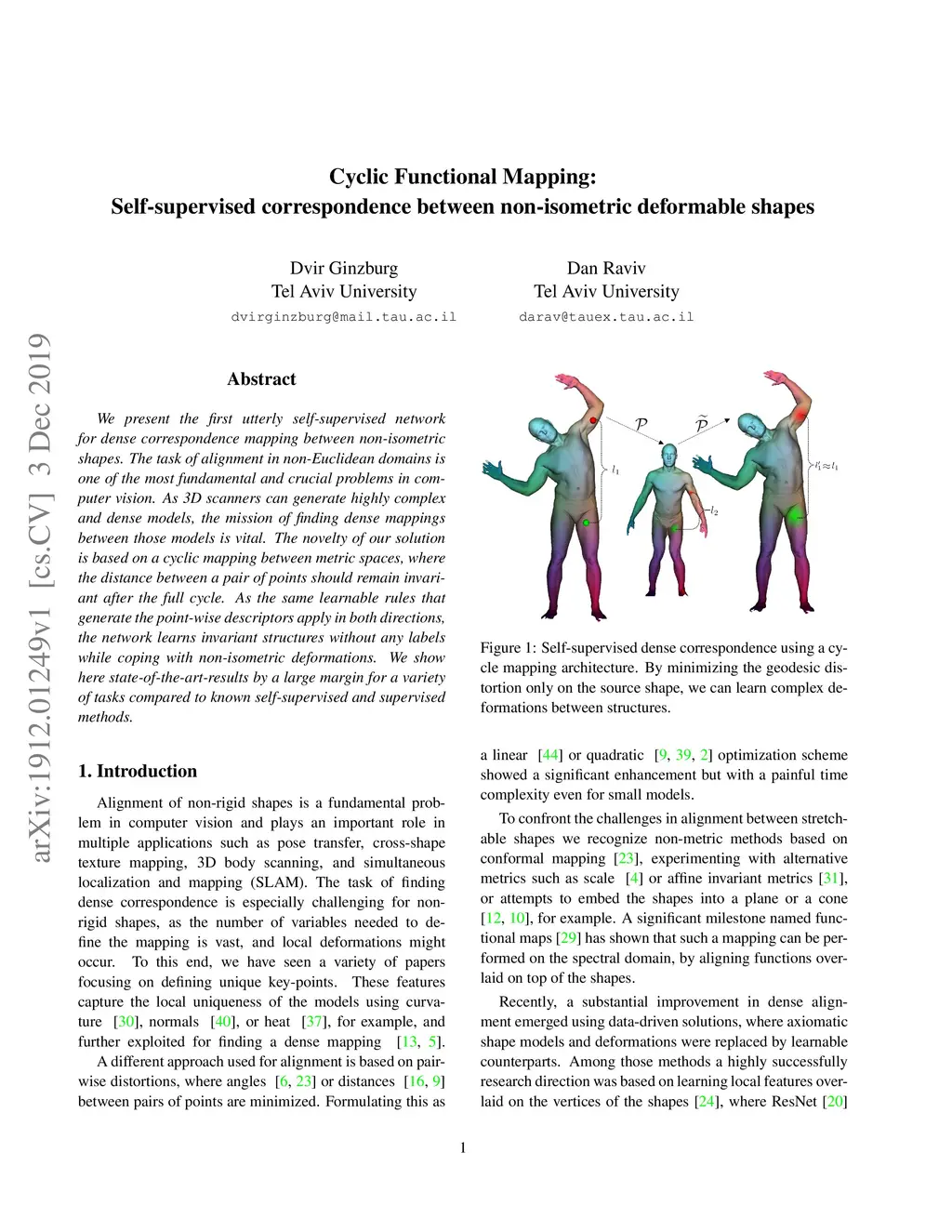 Cyclic Functional Mapping: Self-supervised correspondence between