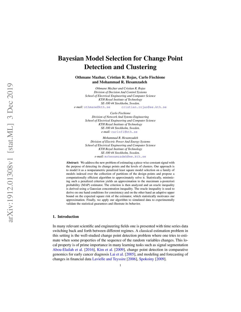 Bayesian Model Selection for Change Point Detection and Clustering