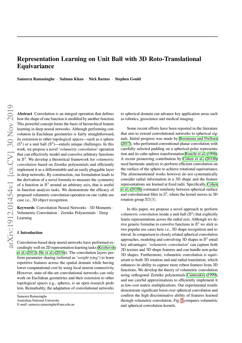 Representation Learning on Unit Ball with 3D Roto-Translational