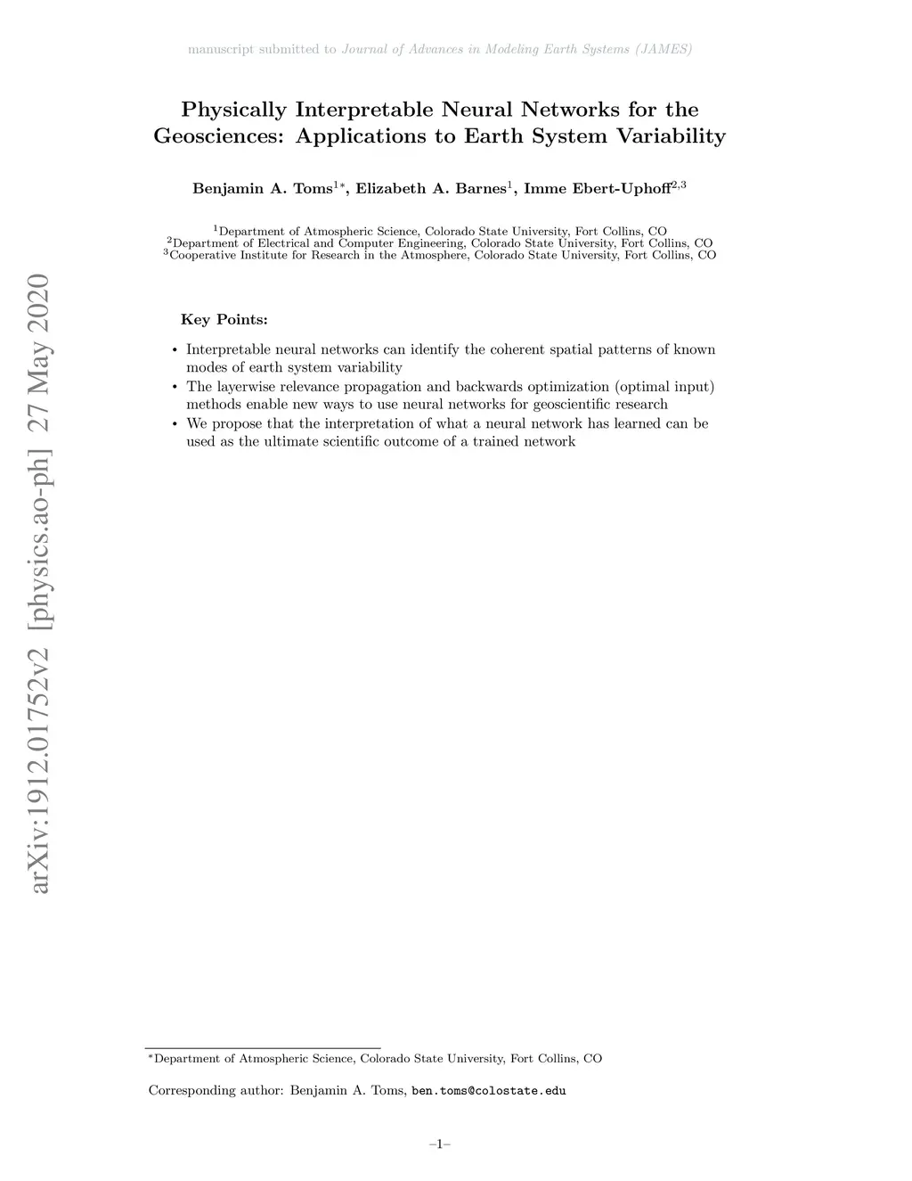 Physically Interpretable Neural Networks for the Geosciences: