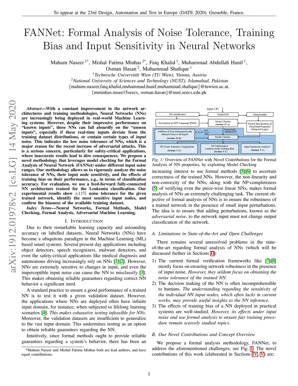 FANNet: Formal Analysis of Noise Tolerance, Training Bias and Input
