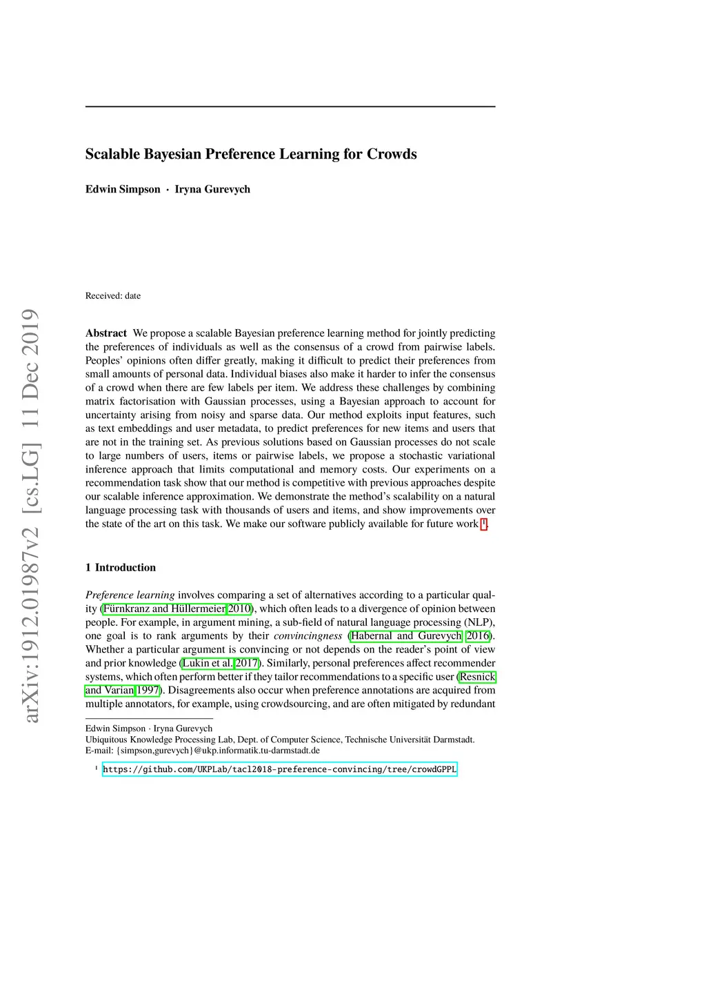 Scalable Bayesian Preference Learning for Crowds