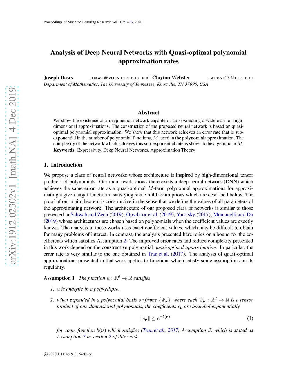 Analysis of Deep Neural Networks with Quasi-optimal polynomial