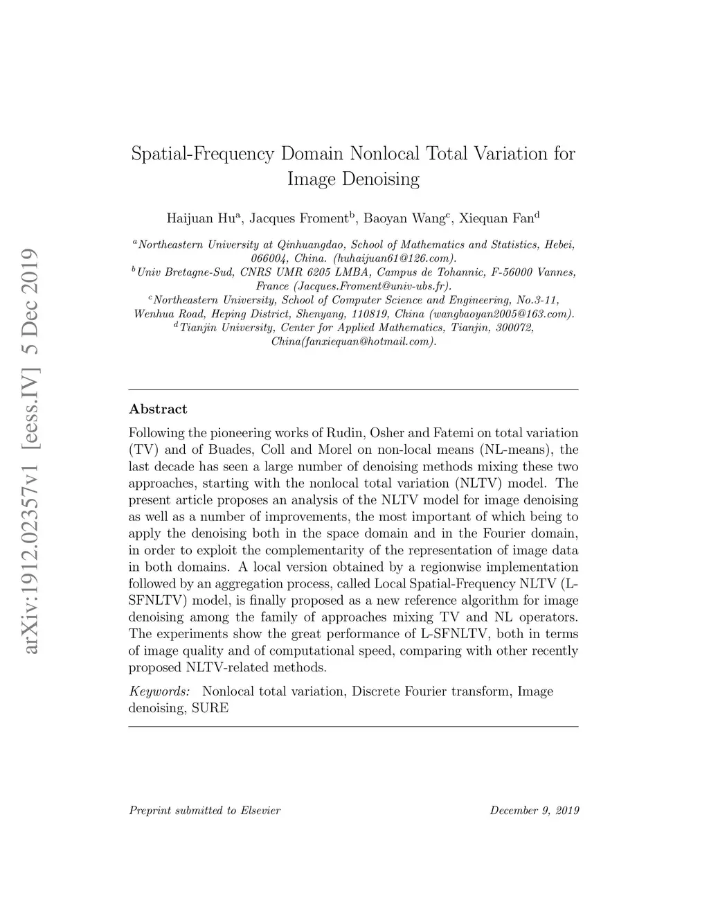Spatial-Frequency Domain Nonlocal Total Variation for Image Denoising