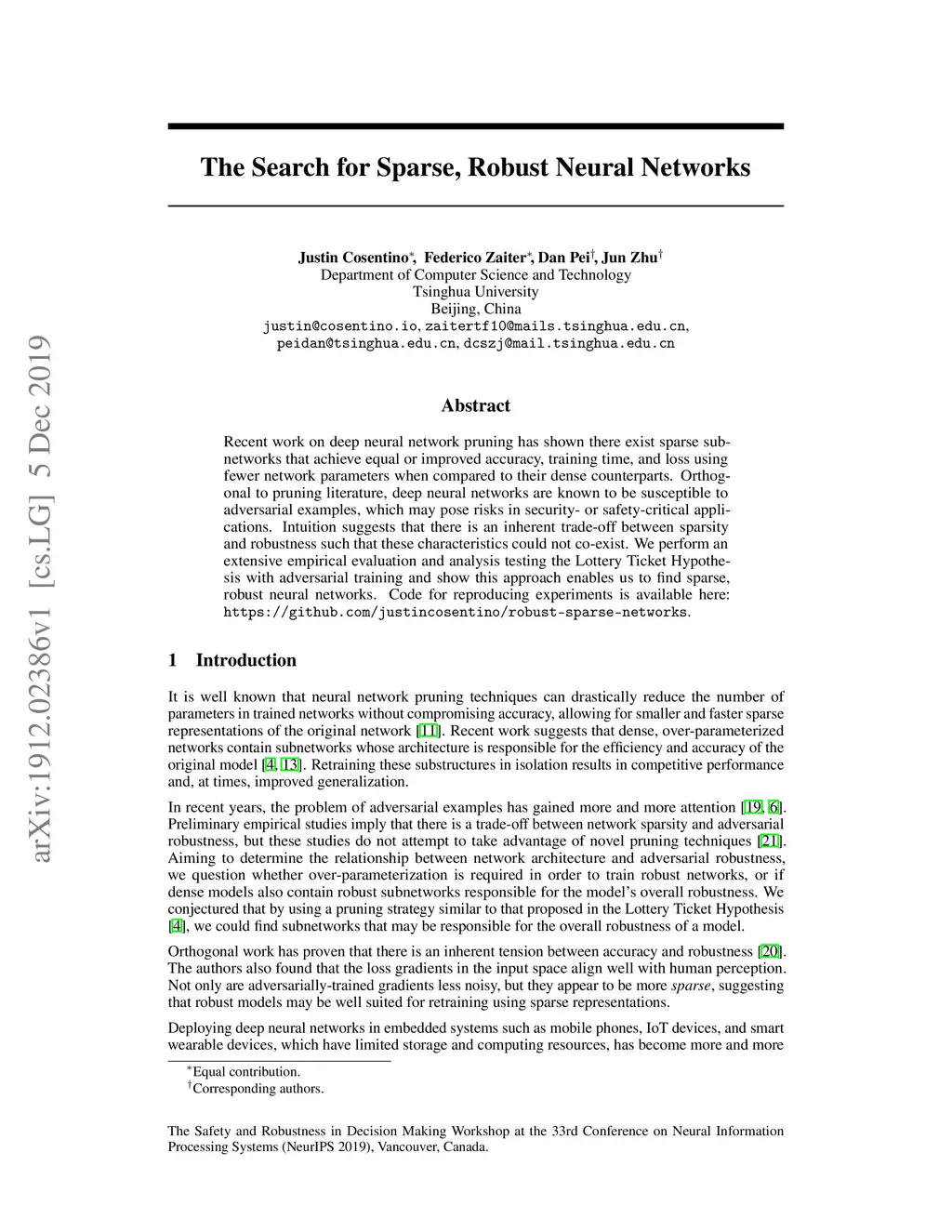 The Search for Sparse, Robust Neural Networks