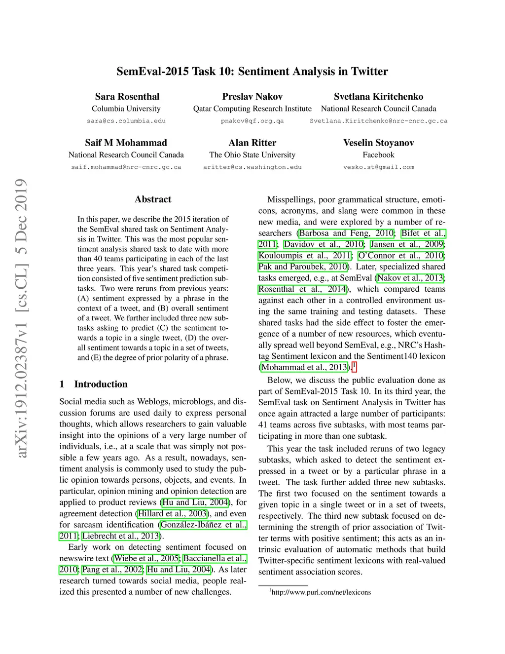 International Workshop on Semantic Evaluation (SemEval), 2015